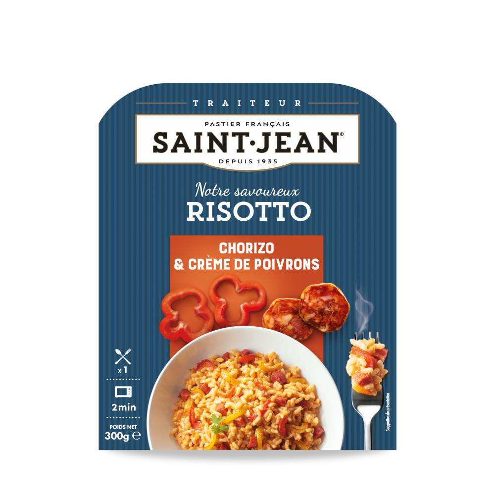 Ce mariage du chorizo et de la crème de poivrons a été conçu pour réjouir vos papilles. Le risotto, préparation traditionnelle italienne, se prête à la création.Prêt en deux minutes, composé d'ingrédients nobles, ce risotto peut tout autant dépanner au quotidien qu'enchanter une soirée en famille ou entre amis.